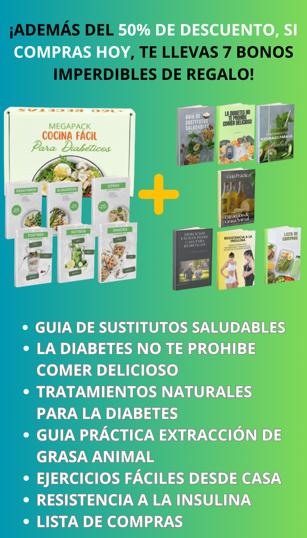 Mega pack Cocina Fácil para Diabéticos: +160 Recetas para todas tus comidas